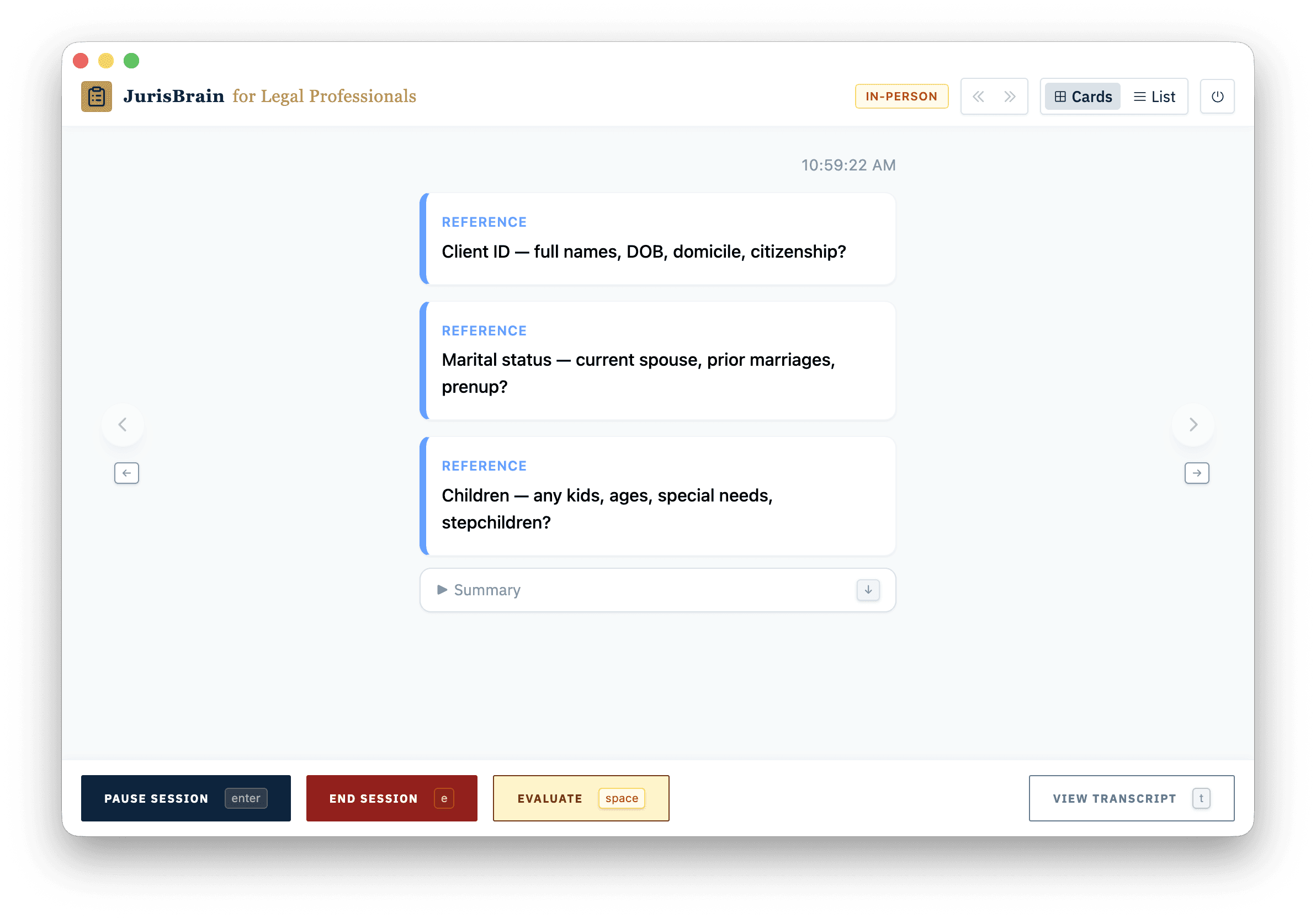 Our system extracts key facts, legal issues, and questions within seconds of a client finishing a sentence.